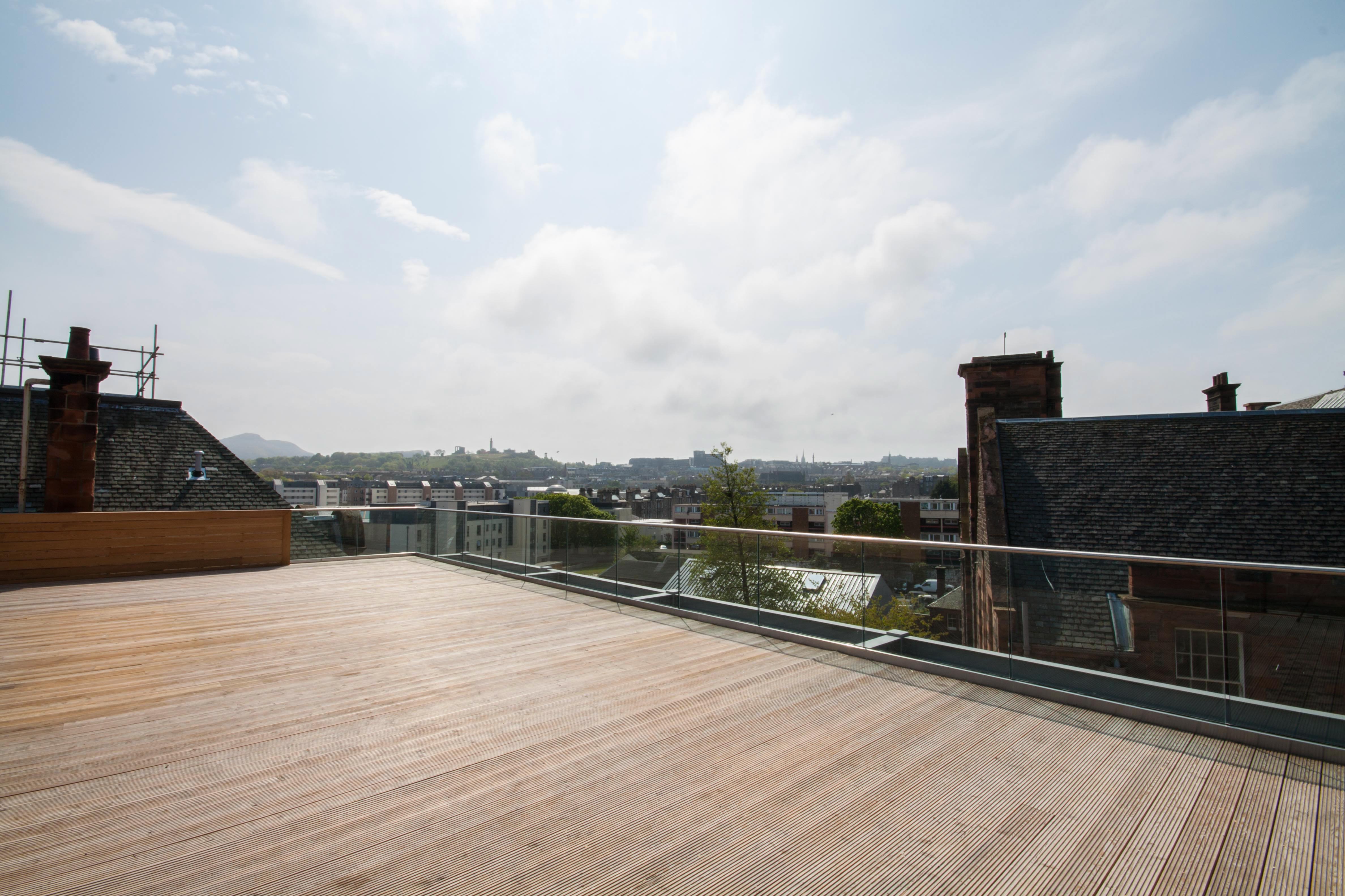Leisure facilities have been provided with the construction of a gym in the basement, a club room at the ground level and a roof deck with magnificent views over Edinburgh.